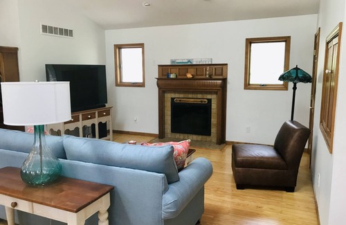 In through the front door, vaulted ceilings and sky lights open up the main living area, connecting the newly-remodeled kitchen, dining room and living room. Plenty of space for everyone to be comfortable yet feel connected. A separate side entrance and lots of windows provide plenty of natural light and fresh air. The primary bedroom with new queen bed has an armoire, full closet, and en suite bath. The bunk room is located between the primary bedroom and main bath, perfect for little ones who don’t want to be too far from parents but have their own space. The front guest bedroom is furnished with another new queen bed, full closet and dresser. A second full bath with shower only is located off the kitchen. Laundry is available in the basement. For families with infants, we are happy to offer a bassinet, bath tub, easy-install cabinet locks, and a B.O.B. stroller for your added convenience. It's all in the details - we've worked hard to think of everything to make your stay as enjoyable as possible.