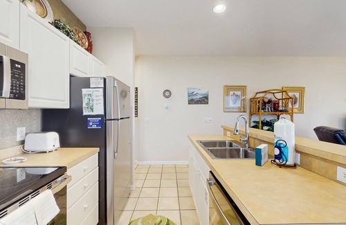 Walk into your stay and discover light-filled living quarters. The living area is plush and comfortable. Lounge here and watch your favorite TV show, or cook something exquisite in the well-equipped kitchen. Meals can be enjoyed at the breakfast bar, dining table, or alfresco on the patio. With funky and fun beach-themed patterns and central air-conditioning, this stay will have you feeling happy and prepared for the day from the moment you wake up. An additional interior perk is a private washer/dryer.