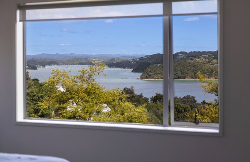 Welcome to our open-plan newbuild with panoramic views of Te Haumi Bay and Opua visible from your perch on the deck, on the couch, or from the comfort of your chosen bedroom.