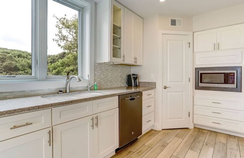 Our kitchen includes everything you need to cook and entertain — stove/oven, microwave, dishwasher, refrigerator, Keurig and drip coffee makers, cookware, and utensils.