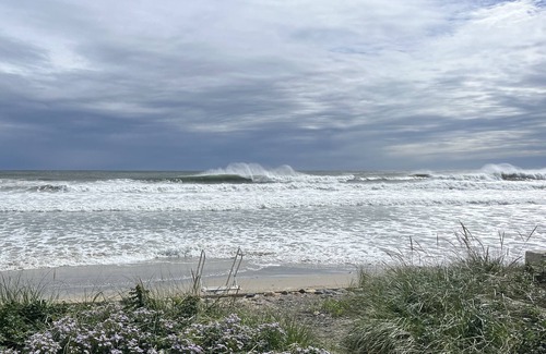 Fully equipped kitchen w/French-door fridge, electric stove, dishwasher, microwave, blender, coffee maker, air-fryer/toaster oven. Bathrooms (3): 2 w/shower, 1 w/tub/shower. Outdoor shower for apres-surf. Vintage cottage furniture throughout. Decks front and back, plus second-floor balcony. Charcoal Weber barbecue. Cable TV and wireless Internet. Radiant heat in all floors, plus gas fireplace in living room.