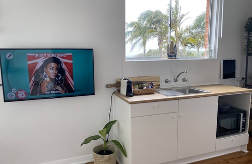 Walk past your own private balcony & into a light filled kitchenette, dining & living area with 43" Smart TV & all with beach views. Enjoy your morning coffee sitting at the small bar table & gazing out at the ocean. The bedroom has a comfy queen bed (bed with fresh linen made up in advance of your stay) & the spacious bathroom has a big walk-in shower & plenty of space to put all your toiletries. The Living Room has a comfy lounge to enjoy a good book.