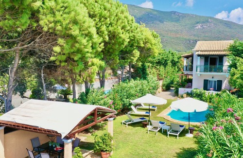 Villa Rania is an exciting, sweet, beachfront property with 3 bedrooms and private swimming pool enjoying one of the most sensational locations of Corfu. Proudly standing right above the perfect and virtually private sandy bay of Kanouli, in South Corfu, Villa Rania is set to impress for its views, space, peace and indeed unique setting. With 3 bedrooms, 2 bathrooms, fully equipped kitchen and extensive outdoor areas, the villa can sleep up to 6 to 8 guests. Reach the sandy bay via directly from your pool patio, enjoy a delicious dinner while admiring the sunset, dive by the pool, chill out in the air-conditioned interiors, or read a book in the mature gardens: this will be a holiday to remember.