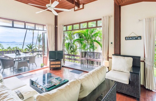 The property benefits from a large communal pool, located just down the villa and enjoys a magnificent view from its large terrace. With the beach at a short distance without any construction in-between, the villa offer a wide open view to the ever changing sea, the 5 islands, the mountains of the continent, the ferries coming and going, the fishing boats and the occasional cruise ships anchored out in front. The location is extremely quiet, yet within only 15 minutes from all the conveniences of Nathon town, the capital of the island, has to offer and within walking distance to several beachfront restaurants and resorts. .