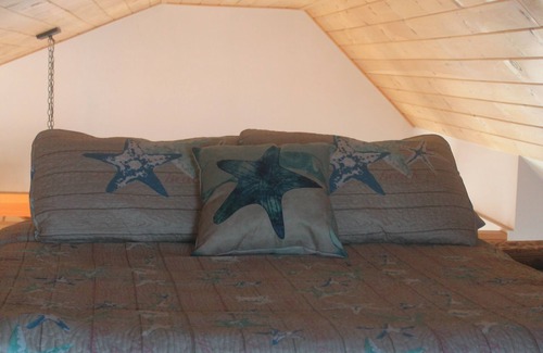Our upstairs, open-concept garage apartment has access through the garage itself (the garage is neat - we don't keep vehicles there.) The apartment touts a complete kitchen with gas range, full size refrigerator, coffee maker, toaster oven, and dishwasher. Dishes and cookware are available if you choose to eat in. Adequate space for dining is at the bar and also a small table for two that overlooks the lobster pound and ocean. There is a bathroom with a shower only (towels provided.) A washer and dryer are available for your convenience, as well as ample closet space. The comfortable living room is a great place to unwind and watch TV or just relax with a good book. There is a queen size bed downstairs and a queen size mattress and twin mattress in the loft upstairs. The loft is cozy, but it’s not a space where someone can stand completely upright. The views from the apartment are spectacular and there’s the opportunity to see more as you step out the door. Because this is a lobster fishing community, you will clearly see fishermen coming and going in their boats from our property. You also are welcome to walk around our family’s lobster pound which is directly beside the garage. Our guests are invited to use the bench and table made from lobster traps that sit on the left side of the lobster pound. The most spectacular sunsets are visible here as you fill your lungs with crisp, ocean air!
