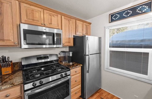 Looking for a stylish and cozy retreat in the heart of Big Bear Lake? Look no further! This charming 1 bedroom/1 bath rental, ideal for extended stays, boasts tasteful decor, a fully equipped contemporary kitchen, convenient washer/dryer facilities, a 50" 4K TV, high-speed wifi, adjustable standing desk and open floor plan. Nestled within walking distance of Snow Summit and a mere mile from the bustling village and serene lake, this haven offers effortless access to shopping, dining, and entertainment options. Whether you're a remote-working couple, a solo professional, or an adventurous soul craving a mountain escape, this property is tailored to meet your needs. Please note: one dog is welcome, but we regret that we cannot accommodate cats.