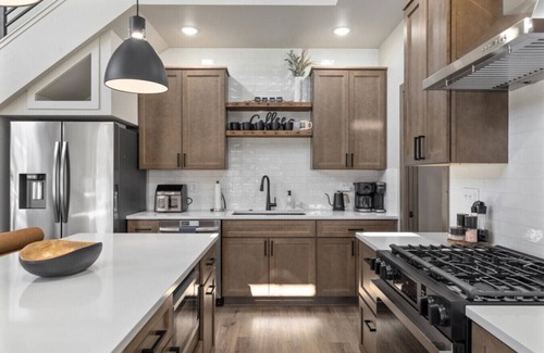 After a day of adventure, unwind in the private hot tub while taking in the crisp mountain air and breathtaking alpine views. Inside, the home’s open layout, warm finishes, and modern amenities create a comfortable, inviting atmosphere. Enjoy a movie night by the fireplace, cook up a feast in the well-equipped kitchen, or relax on the spacious deck.