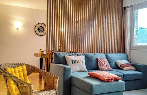 Located in Rouen, this 2-bedroom, 1.5-bathroom apartment lets you experience it all. Fans of nature and the outdoors will love being 7 minutes by foot from Seine and 6 minutes by car from Boucles de la Seine Natural Regional Park. Rue du Gros-Horloge is an easy 14-minute walk away and Gros Horloge is also a quick 15-minute walk away. If you're looking to expand your horizons and see other nearby locales, you can catch a train at either a short Joffre-Mutualite Tram Station, 5-minute walk away, or Saint-Sever Tram Station, 7 minutes away.