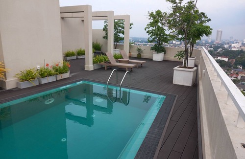 The rooftop consists of a swimming pool, gym, pool table and a table tennis board.
