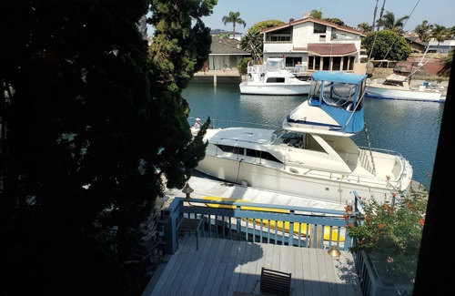 This 4 bedroom, 2.5 bath, waterfront home boasts a large back deck and spacious master suite. Gorgeous views of the peaceful, harbor canal from the living room, back deck and the master bedroom. Use of private boat dock, including mooring for 12 ft / 16 ft flat bottom boats. Close to restaurants, paddle board/ kayak rentals, HB Pier, shopping, a 5 min. walk to beautiful Sunset Beach. 3 blks from public boat launch ramp. Trip to Catalina (Two Harbors) is under less than one hour from breakwater.
