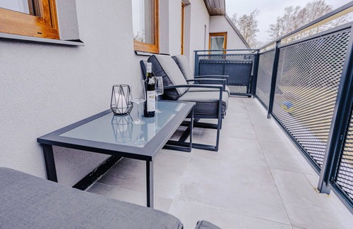 The Rezidence Petra Voka 205 offers a terrace spanning 13 square meters, furnished with terrace furniture. You can enjoy beautiful views of the countryside from the terrace. The property provides internet access via WiFi, which is complimentary. Additionally, you will have a reserved parking space at the house during your vacation.
