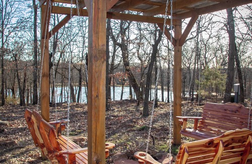 Beautiful Cabin with View of Private Lake, Hot Tub & Outdoor Swings! | Cabin in Vian