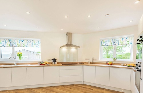 The property consists of ramp entrance, large living room with bi-folding doors, Smart TV and electric fire, large open plan kitchen/dining area with patio doors leading to the garden, the kitchen has an electric hob, double electric ovens, fridge/freezer, microwave, wine cooler and dining area. Ground floor bedroom with twin single beds leading to a bathroom with walk-in shower and heated towel rail and utility room with washing machine; the whole of the ground floor is supplied with underfloor heating. On the first floor there is a double room with sea views and TV, en-suite shower room, twin bedroom with balcony, king-size bedroom with balcony, family bathroom with shower over bath and heated towel rail, large enclosed garden with patio area and private hot tub.