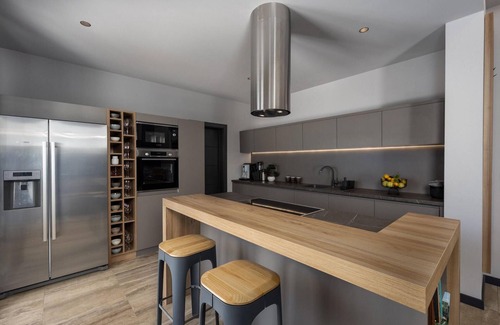 In the superbly designed annex you will find an additional spacious bedroom with double bed, an additional single bed and bathroom, alongside a separate toilet. Furthermore, the annex features a spacious dining room with an indoor fireplace and its own kitchen. The basement area has a party-room with an exceptional entertainment offer that includes billiards, darts, table football and a PlayStation console. Wine lovers will enjoy the well-stocked wine bar also conveniently located in the basement. Eye-catching decorative elements and works of art fill the inside of the villa whose main features are muted colours and luscious fabrics completing the luxurious feel of the interior. Underfloor heating and automatic cooling are available in every room of Villa Quercus.