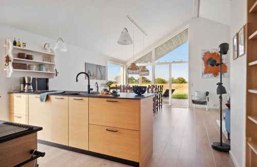 It awaits you on the edge of a housing estate and surrounded by sea and two lakes, this beautiful and modern vacation home for vacation with your extended family or a family of friends. The layout promises privacy, as there is a main house and an outbuilding, which has two bedrooms and a private bathroom. In the main house, a light-filled living room invites you to spend time together. You can enjoy a great view of the surrounding landscape and water while doing anything.