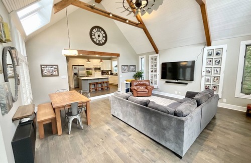 Our home is 3400 sq ft with 4 bedrooms and 2 full bathrooms on the second floor, additional sleeping space for up to 3 people on the 3rd floor, and additional sleeping space for up to 5 people in the finished basement plus half bathroom. Cribs available upon request! Awesome kitchen/great room combo that leads to a beautiful patio with dining and lounge seating. Laundry is in the basement and accessible to guests. A main floor office could also be used as an additional private sleeping space for up to 2 people.