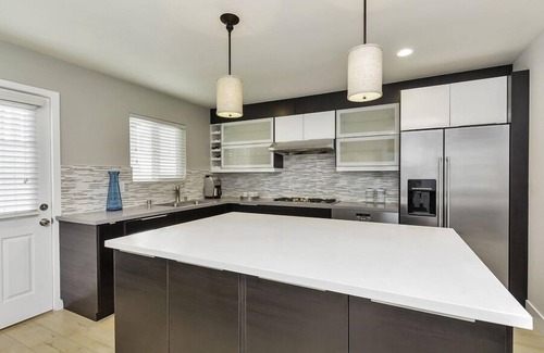 Welcome home! This is the perfect place to enjoy your Southern California vacation. Located only 1+ miles from the sands of Newport Beach and within walking distance from the night life of Triangle Square, you will enjoy this expertly designed and modern home. Enjoy the cool air conditioned rooms during the hot summer. The home features a modern kitchen with new appliances and Quartz counter tops. Custom cabinetry and large center island provide storage and easy access. The house is completely surfaced with contemporary wood flooring and furnished with beautiful but comfortable items for you to lounge and relax. The dining table can extend to seat 6. A large 60" LCD screen with access to wifi, cable. Gaming console PS3 included. Easy access to garage for parking or just another space to hang out. Bedrooms are decorated and bedded with linen. Each have a walk-in closet. Custom designed bathrooms with beautiful showers and tile work helps you relax at the end of the day. If you don't have a car, no worries. Bus 43 will take you to the front gate of Disneyland. Catch the bus at the Victoria and Harbor stop, a short 10 minute walk away.