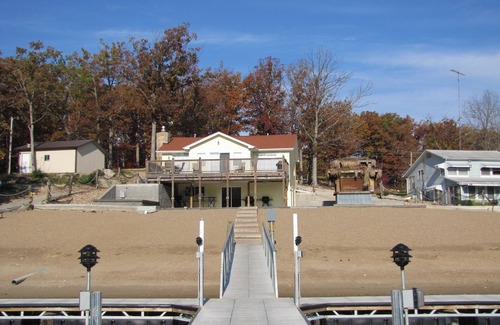 This Lake Getaway is newly remodeled and designed to impress! This is the perfect choice for a romantic getaway or vacation of serenity and luxury. You will enjoy a beautiful view of the lake from the open windows lining the backside of the house on the magnificent deck. Plus, this is the only house that is right on the beach! We also offer Free Wi-fi at Captain Ron's, but none is available in the unit. There are two bedrooms to comfortably accommodate up to four guests. The kitchen is fully equipped to handle your cooking desires and the living room has a romantic gas fireplace. This home is perfect for fun and perfect for romance!