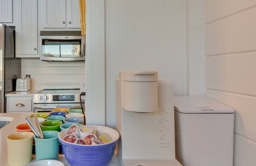 CHEF'S KITCHEN: Fully equipped kitchen, stainless steel appliances, dishwasher, full knife set, cooking basics, dishware & flatware, Keurig coffee maker, wine glasses