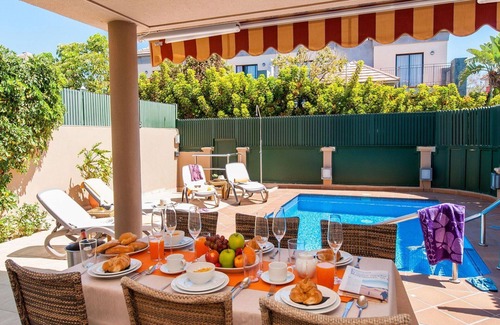 Beautiful private villa for 8 guests with WIFI, private pool, A/C, TV, patio and pets allowed is located in Meloneras. Beautiful private villa for 8 guests with WIFI, private pool, A/C, TV, patio and pets allowed provides accommodation, featuring Private Pool, Balcony/Terrace, Security/Safety, among other amenities. This Villa features Private Pool, Balcony/Terrace, Security/Safety, to make your stay a comfortable one.