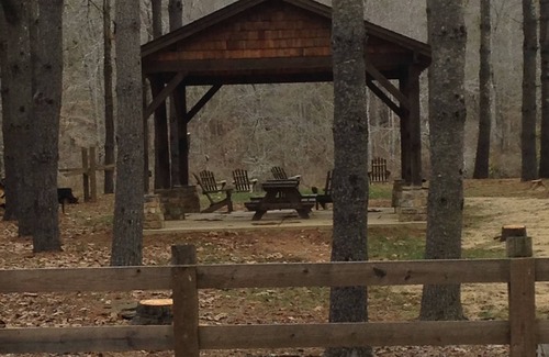Enjoy fishing right from the bank in the back yard! Guests have asked, yes, there is year round water to enjoy. River is great for Kayaking, tubing, fishing or just walk down the amazing steps right into the river for a cool off. Owner can recommend fishing guide services or transport for tubing fun to end your journey at the house. Tubes are on site, 2 kayaks, ease into the river.