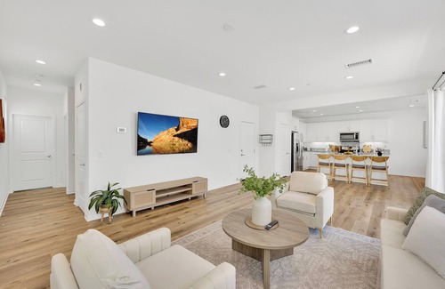 • Large living room with a 65-inch TV, perfect for family gatherings.