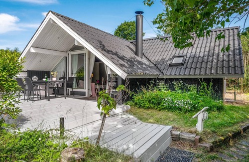 This lovely wooden vacation home welcomes you with a pleasant atmosphere. Come as a small family or friendly couples including dog to this beautiful vacation accommodation and experience a wonderfully relaxing vacation near Liseleje Strand. The interior is complete and cozy, so you will want for nothing. On the terrace you can dine in the fresh air and enjoy the sun. Also in the garden you will find cozy spots for sociable evenings by the fire.