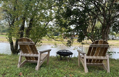 Take a break and unwind at this peaceful oasis. The Studio Cabin is waterfront with a big front porch to enjoy the beautiful scenery.. Cabin sleeps four guest with two furnished queen beds. This Cabin includes one full bathroom and small kitchen. The Cabin is furnished with bedding, and some bathroom and kitchen necessities. Wifi and a big 72” smart TV sit on the wall! Over 200 yards of fishing from the bank on the property. Located minutes from downtown Elizabethton. Also located 15 minutes from Bristol Motor Speedway!
