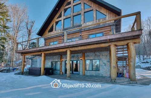 Beautiful construction custom built log home on a waterfront view. 8km to Morin-Heights and 15 km to St.Sauveur ski slopes, shops, restaurants, supermarket, bank,trails,public park and beach(5 min from the chalet). Equipped kitchen with stainless steel appliances and granite counters, two story living-room with wall of windows overlooking the lake and opening to a gorgeous full length of the house deck. The basement and main level have beautiful slate flooring with heating underneath.