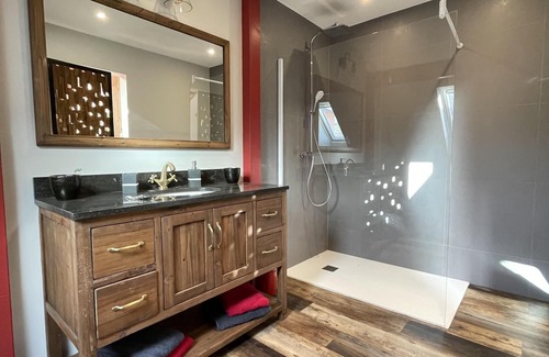 The bed can be changed into 2 single beds or a large 180X200 bed. For more comfort, you will find a table there for your breakfasts if you wish them in your room or for your meals taken away.