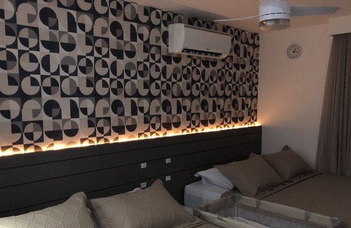 Complete apartment with all amenities and comfort for up to 6 people (microwave, airfyer, toaster, grill, coffee maker, nespresso, beer, air conditioning, ceiling fan, safes, amenities, access to the apartment by card and much more), in addition to a gated community with private beach, gyms, sauna, adult and children's pool, game room, restaurant and many other services available.