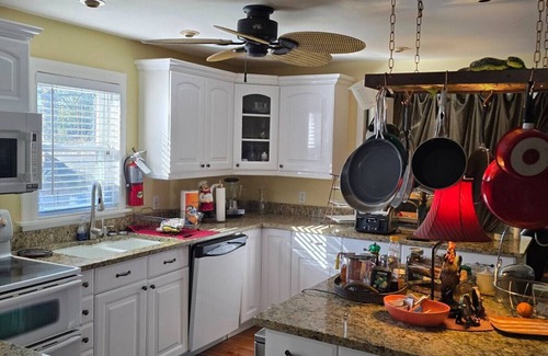 We have in house laundry facility no extra charge and all cleaning supplies provided. We have boat trailer parking areas boat washing areas and boat launching access 10 minutes away. We have RV parking. Our back 14 acres is like a national forest and connected to over 100 more acres of awesome natural forest like forest and rivers on the Crystal Coast.