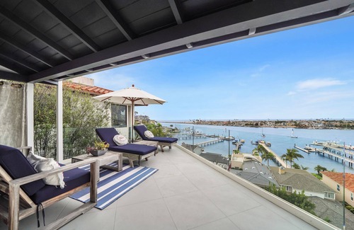This dreamy beach cottage has amazing panoramic views of Newport Harbor main channel and is close to the beach...watch the sunset and sunrise from your master bedroom balcony as nothing blocks your breathtaking unobstructed views of the Pacific Ocean, Catalina Island, Newport Harbor and Corona del Mar Beach.