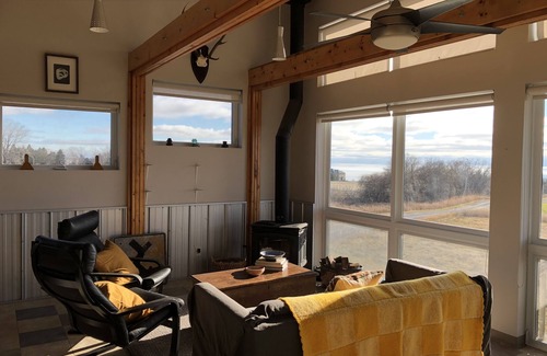 The loft is suitable for 2 people with a queen Murphy bed. Enjoy sitting by the woodstove fireplace in the evenings or watch the sunset from the deck.
