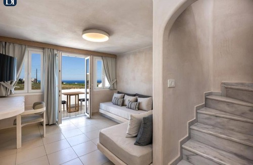 Two storey suite with traditional arches for special preferences. The cozy bedroom upstairs and the comfortable living room on the first floor, offer a stay inspired by the traditional architecture of the island. The huge terrace with uninterrupted views will satisfy lovers of pleasure.