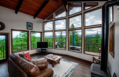 Big Sky Lookout is an awe-inspiring 1-bedroom with loft, 2-bathroom Main House—plus 1-bedroom, 1-bathroom Guest House that sleeps 8, located 9 miles away from historic downtown. For world-class skiing and snowboarding, Whitefish Mountain Resort is 25 minutes away. With over 1,900 square feet of living space, guests will love the privacy, large wraparound deck with above-tree line views, loft space, and more!