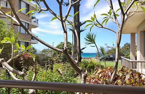 The standout feature is the spacious and private beachfront balcony with ocean views surrounded by tropical gardens. There is also a second courtyard area accessed from both bedrooms. Full size clothes line on the back terrace.