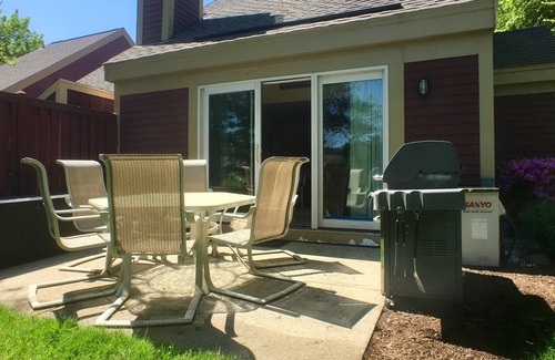 The kitchen comes fully equipped and seats 6 in the dining area. The air-conditioned living room also features comfortable furnishings and a mounted flat screen smart TV. Sliding glass doors in the living room lead to the outdoor patio, furnished with a Weber Genesis gas grill and outdoor dining set. Other amenities include a custom desk, 27" Dell Monitor computer, and high speed WIFI.