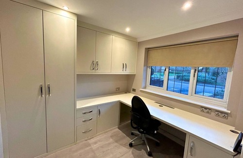 Discover this exceptional five-bedroom, three-bathroom detached home in the desirable neighbourhood of Binfield. Ideally positioned for access to the M4 and M25 motorways, this property is a fantastic base for exploring Berkshire, commuting to London, or staying in a premium location.The ground floor offers a wealth of living space, beginning with a large home office that’s perfect for remote work. The living room features a smart TV, working fireplace, and reclining sofas, leading into a bright dining area with seating for six and full-width bi-fold doors opening onto the garden. A second wall-mounted TV is located in the dining room for added comfort.The kitchen is a highlight — spacious, sleek, and highly functional — complete with a second kitchen area housing additional appliances and storage. A large downstairs toilet completes the lower level.Upstairs, the home offers five beautifully furnished bedrooms. The master suite features a super king bed, built-in wardrobes, air-conditioning, a wall-mounted TV, and a luxurious en-suite with both bath and separate shower. Additional bedrooms include three doubles (one with shared bathroom access) and a large single. A stylish family bathroom completes the upper level.The rear garden is fully enclosed and immaculately kept, featuring both an open and a covered seating area for all-weather enjoyment.We are a pet-friendly organisation. However, pets are accepted upon request and require pre-approval regarding type, breed, and number. Conditions apply and acceptance is always at our discretion. Cleaning and booking fees may apply.If you have any questions or need more information, feel free to get in touch. Hosted by Spare Crib Global Ltd.