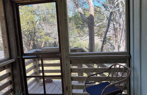 Birdland is a secluded tiny house with marsh views & private creek access.