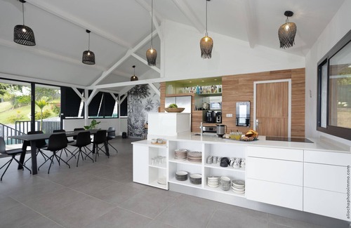 A sense of luxury emanates from the villa, undoubtedly maintained by the choice of noble materials, high-quality furniture, and top-of-the-line bedding. The decoration creates a warm and intimate interior that gives a feeling of being at home. It is a true cocoon where it is pleasant to live and recharge because here, everything has been designed for your comfort.Sea View villa for rent in Martinique