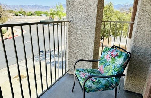 Come stay at this beautiful Springs condo & enjoy the views of the mountains and the valley. This condo has 2 bedrooms, 2 baths on the balcony level with its own kitchen, (1130 sq. ft.) and can sleep up to 6 adults with additional air mattress rental. It features beautiful furnishings and luxury amenities - A balcony off of the living room, large kitchen w/ all utensils, linens, washer & dryer, flat screen TVs, cable, and a one car garage.