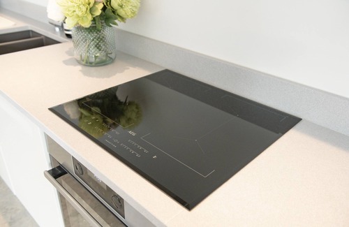 With electric oven and Induction hob, Nespresso Lattissima coffee machine, fridge and freezer.
