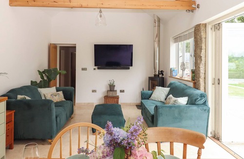 The living areas in this single-storey property consist of an open-plan living space with kitchen equipped with electric oven, induction hob, dishwasher, washing machine, fridge and freezer, a dining area with seating for two guests and a sitting area with Smart TV and woodburning stove. There is one king-size bedroom, along with a shower room. Outside there is an enclosed rear garden with lawn, patio and furniture, and parking is available. Within 0.5 miles you will find a shop and within 0.6 miles, a pub and please note that two well-behaved pets are welcome but sorry, no smoking. WiFi, fuel, power, starter for woodburning stove, bed linen and towels are all included in the price. Blake Cottage is a lovely escape for a couple in Cornwall. Note: There is a pond in the garden, please take care. Note: Property does not take children. Note: This property can be booked with Refs. 999355, 999356, 999357 and 987239 together they can sleep twenty four people.