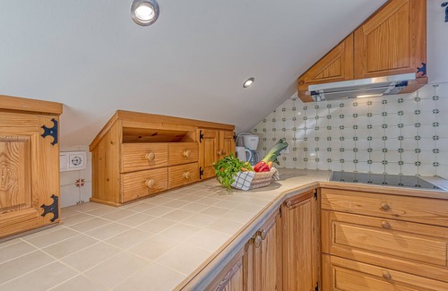 Bedroom 1: The cozy room under the sloped ceiling has a double bed, balcony access and wardrobes.