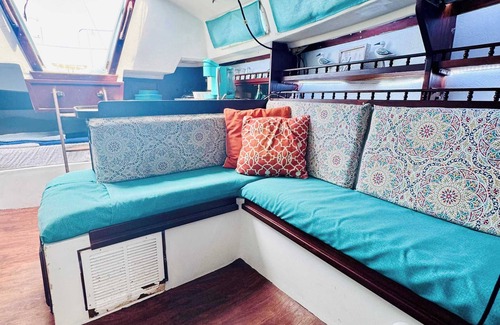 Very comfortable 30 foot Catalina sailboat that sleeps 2. Plenty of room to move around with a kitchenette, decorated seating, and one double V-berth.