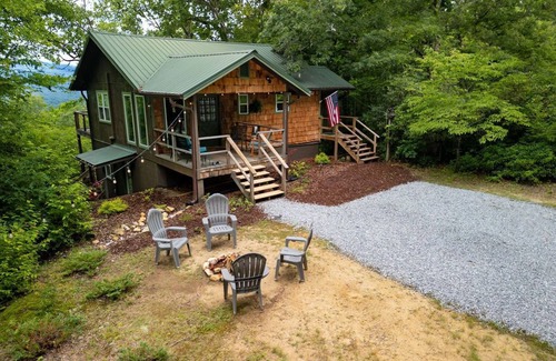 See off Seclusion is a rustic, yet modern and cozy cabin that offers a quiet, relaxing lodging experience. Look out over the treetops at the Blue Ridge mountains with phenomenal year-round long-range views from every room.