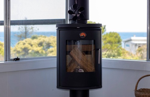 - Open kitchen/dining/lounge: fully equipped compact kitchen, electric cooking, Nespresso coffee pod machine, 4-seater lounge with ocean views, Smart TV with Netflix and Kayo, Fireplace, reverse cycle A/ C, 4-seater dining table and 2 stools