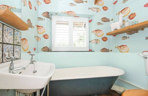 Amenities: Gas central heating. Electric oven and hob, microwave, fridge, washing machine and dishwasher. TV, DVD player, WiFi. Fuel, power and starter pack for woodburning stove inc. in rent. Bed linen and towels inc. in rent. Public car park. Enclosed rear garden with lawn, patio and furniture. One well-behaved dog welcome. Sorry, no smoking. Shop and pub 0.1 miles. Note: The staircase spirals and is not suitable for children under 7 or those with mobility issues. Note: Check-in from 4pm and check-out by 10:30am