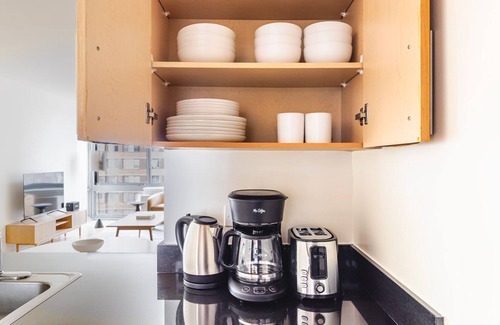 As with any Blueground apartment, you’ll find a thoughtfully designed space complete with beautiful furniture and a fully equipped kitchen in this one bedroom property. And, thanks to our superior quality mattresses, luxury linens, and towels, you can relax knowing you’ll always feel comfortably at home. When you’re ready for some fun, you can take in the New York vibes or bring the entertainment to you with the premium wireless speaker or smart TV. This apartment also offers in-apartment laundry.